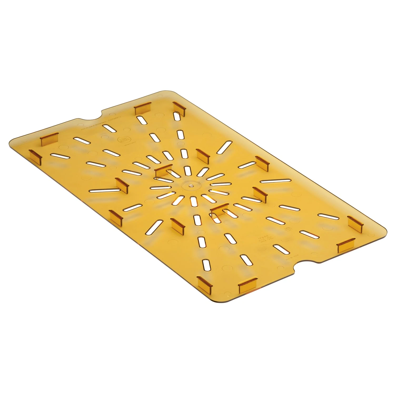 Use this Amber, full size drain shelf to let the contents of your H‐Panâ„¢ drain while being served or transported. The high heat material withstands temperatures from ‐40°F all the way up to 375°F, making it perfect for flash freezing, cooking and reheating; you can use it with microwaves, steam tables, chafing dishes and more.