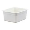 For a more economical choice for prep tables, food bars and vending carts, use this translucent, 4″ high full size food pan made of durable polypropylene. The translucent material allows for content visibility, and this pan withstands temperatures from ‐40°F to 160°F, making it good for both warm and cold food. The smooth, non‐stick interior makes cleaning easy, and also helps the pan stack neatly without sticking.