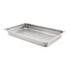 This San Jamar® Chill-It® 1/2-Size Black Food Pan is ideal for food prep areas or serving and holding applications. Simply freeze overnight and food stays cold for up to 8 hours. This eliminates the mess of unsanitary ice baths. It has a non-toxic insulated gel core and is dishwasher safe.