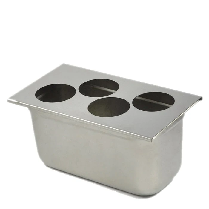 This 24 ounce bottle organizer from FIFO Innovations holds 4 bottles and fits a 1/3 insert pan.