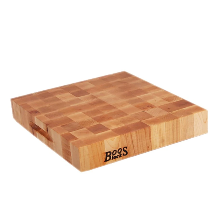 This 18″ x 18″ chopping block from John Boos is 2.25″ thick and features hard maple end grain construction. This chopping block has a reversible cutting surface and hand grips on each end.