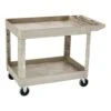 This Lakeside® utility cart can hold up to 500 pounds. The shelves are 20 gauge stainless steel with reinforced edges to hold heavy loads. The legs are 16 gauge stainless steel. The 5″ casters have a cushion tread that will not mark floors. It is easy to clean and is NSF approved.