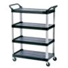 This 18″ x 30″ MW series standard duty cart has two solid stainless steel shelves and holds up to 375 pounds.