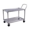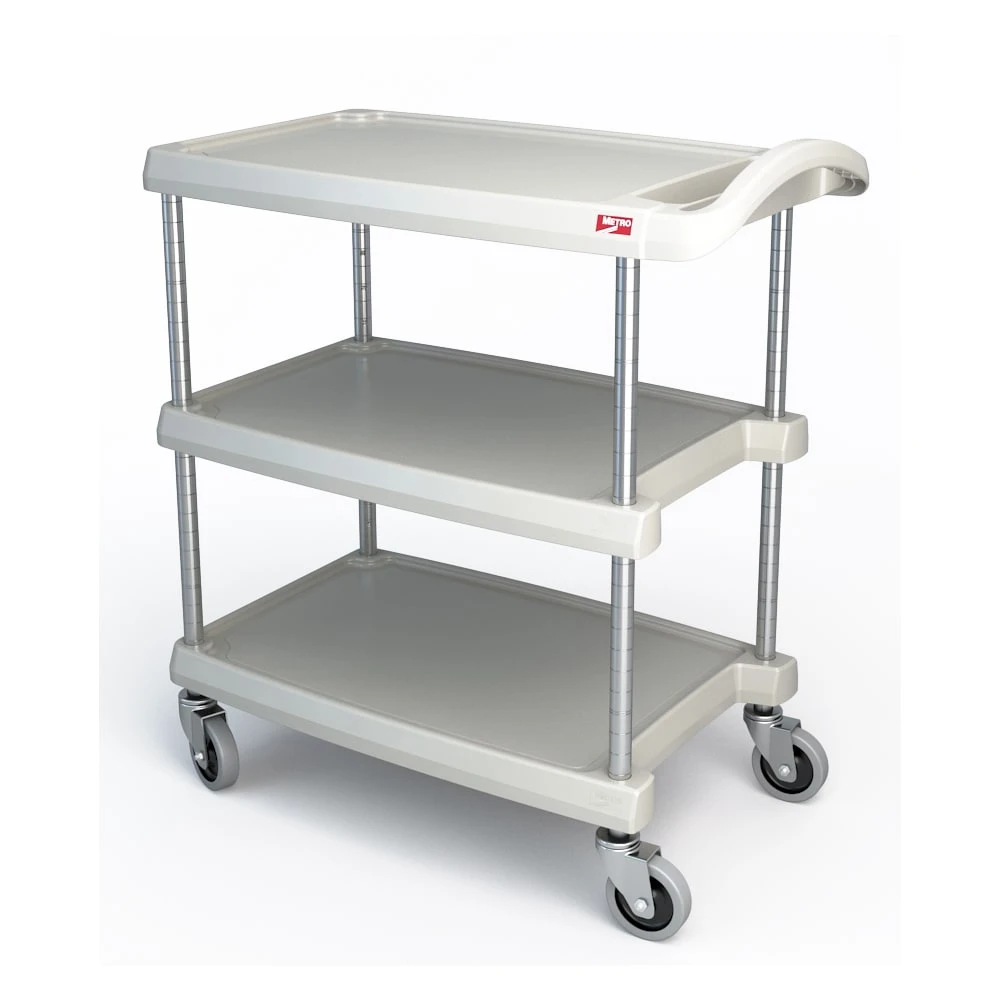 This gray 3‐shelf MyCart cart from Metro provides additional legroom that puts more distance between the shelves and you. You can push the cart easily without hitting your shins or feet against the cart. Each cart has a utility tray for smaller items and four swivel casters.