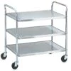 This black MyCart cart from Metro features two 20″ x 30″ shelves. Each cart has a utility tray for smaller items and four swivel casters. These carts provide additional legroom that puts more distance between the shelves and you. You can push the cart easily without hitting your shins or feet against the cart.
