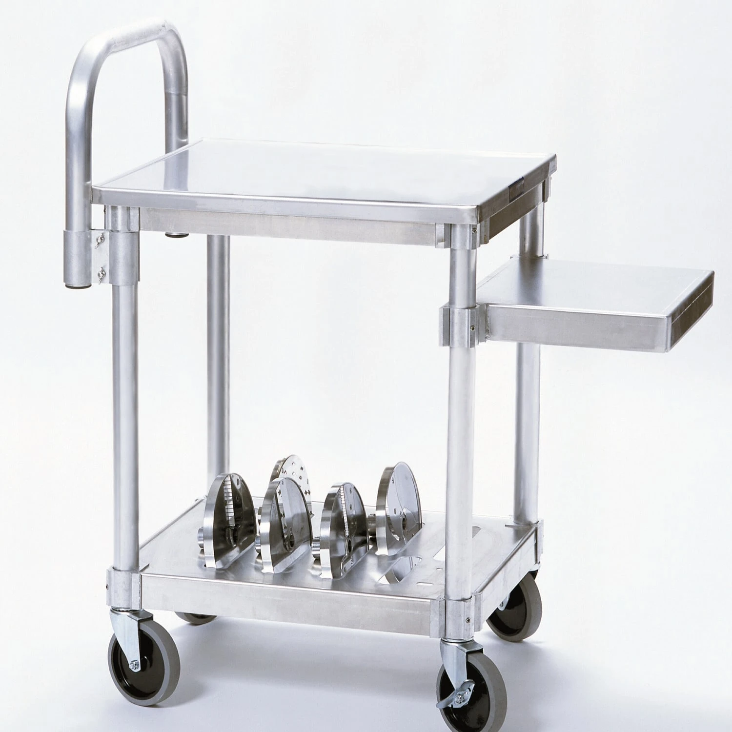 Use this Robot Coupe® aluminum frame prep machine cart comes with adjustable shelves and plate storage that allows for food processor operation.