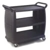 This heavy‐duty utility cart from Rubbermaid is a versatile, durable cart able to perform a wide variety of tasks. This sturdy, yet lightweight cart Will Not rust, dent, chip or peel and has an easy‐access bottom shelf. The rounded corners protect walls and furniture. This cart has a 500 pound load capacity and is perfect for transporting materials, supplies and heavy loads.