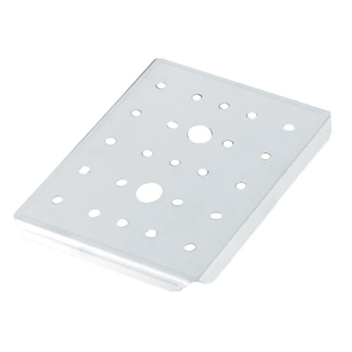 This Vollrath® half size false bottom holds food above pan bottoms to allow for draining. It is made out of attractive and durable 300 series stainless steel, and features finger holes for easy removal. It is meant for use with the Vollrath® Super Pan V®. This item is made in the USA.