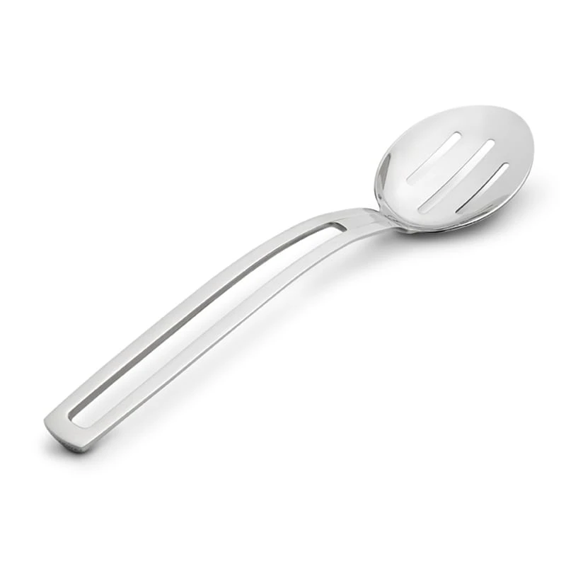 This Miramar® slotted serving spoon from Vollrath® features an aesthetically pleasing appearance that is perfect for front-of-house use. This 11.4″ spoon has an ergonomic design that allows for a comfortable grip. The heavy-duty, cast stainless steel handle features an open design which dissipates heat so the spoon maintains a safe temperature.