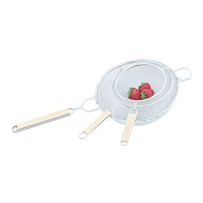 This fine double mesh strainer from Vollrath® is a must have for every professional kitchen! It features a reinforced wire rim for added strength and also has a lacquered wooden handle. This retinned wire mesh strainer is 8″ in diameter and also includes a double pan hook.