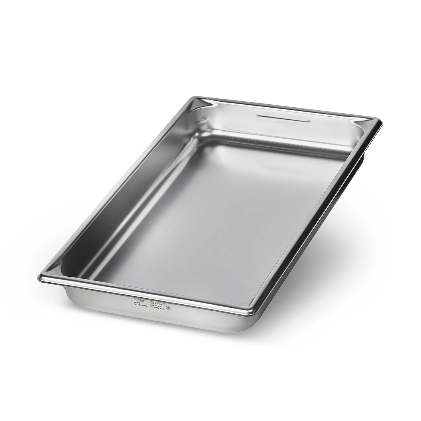 This Super Pan V® full size induction pan from Vollrath® is 2.5″ deep and is constructed of induction-ready, 22-gauge stainless steel. It features smooth curves and a natural finish for a show stopping look and the pour corners will resist dents and dings in the toughest kitchen environments.