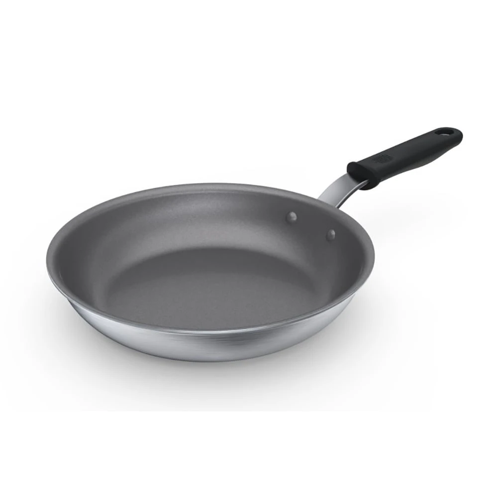 This 10″ fry pan features heavy gauge aluminum construction and a PowerCoat2™ dual‐layer, ceramic‐reinforced non‐stick coating that is 250% more durable than before. It also has a TriVent silicone handle that is rated up to 450°F, with a special vented design that prevents heat transfer from the pan to the handle and an ergonomic shape that reduces user stress and fatigue.