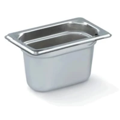 This 1/9 size steam table pan is perfect for displays and steam tables thanks to the stylish rims and durable stainless steel construction.