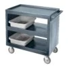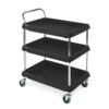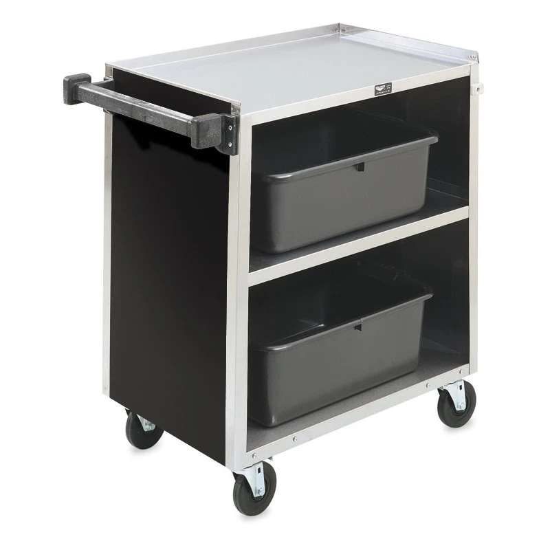 This 3 shelf bus cart allows you to hide the dirty plates and dishes because it is enclosed on four sides and the attractive vinyl adds some class and elegance.