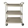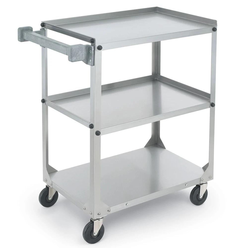 The ABS Handles of this Vollrath Stainless Steel Utility Cart will be easy on your walls and doors. This cart can handle 300 pounds of well distributed weight on all shelves.
