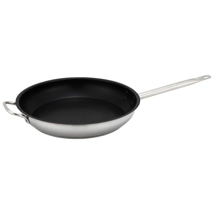 This Winco® Fry Pan comes in a 14″ size and is made from stainless steel. It features a non-stick coating for easy food removal and clean-up.